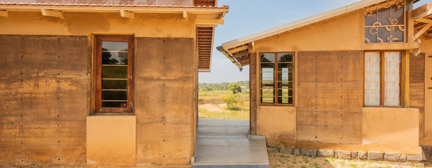 Built using cob walls on a stone plinth with a distinctive three-step gable roof, the structure embraces natural materials for both comfort and climate-resilience. Earth-toned interiors and native landscaping complete the experience—where sustainable living meets quiet retreat