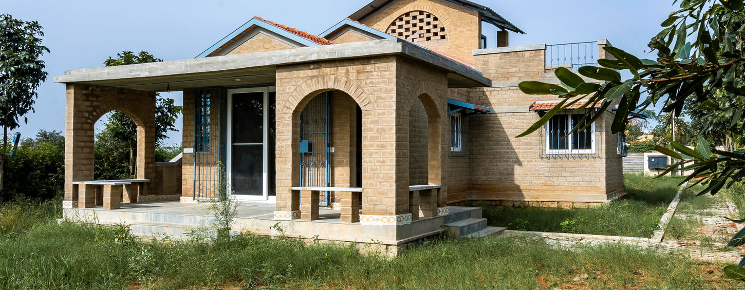 Inspired by the quiet strength of the Sabarmati Ashram, this 1500 sq. ft. farmhouse was designed as a retreat rooted in simplicity and climate-conscious living. The clients envisioned a space that reflected mindfulness—unpretentious, open, and deeply connected to nature.